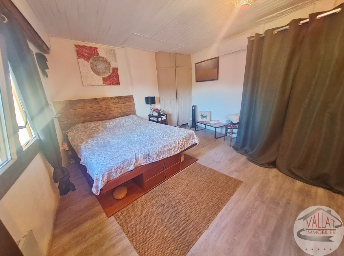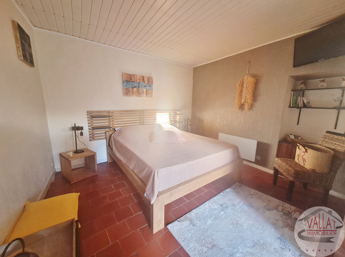 Au premier étage, place à la sérénité : une chambre de 12 m², dotée d’un placard intégré, s’accompagne d’une salle de bains et d’une salle d’eau supplémentaires. Sur le même niveau, un studio d’environ 33 m² offre un bel espace autonome.