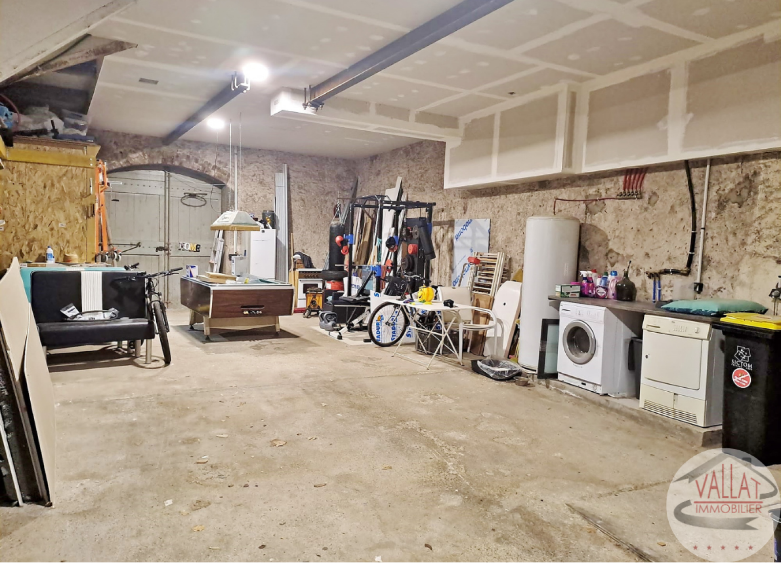Au rez-de-chaussée, vous découvrirez un hall d’entrée menant à un immense garage de 80 m² environ, un véritable atout pour du stationnement ou du rangement. Un WC, un coin buanderie et un espace atelier viennent compléter ce niveau.