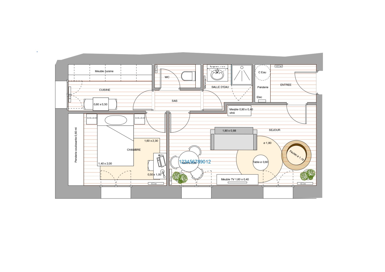 L’appartement se compose d’un hall d’entrée de 4 m² avec placard, d’un séjour de 18 m² et d’une cuisine séparée de 6 m², offrant confort et fonctionnalité. Le dégagement mène à une chambre de 10,5 m² avec placard, une salle d’eau et un WC indépendant.
