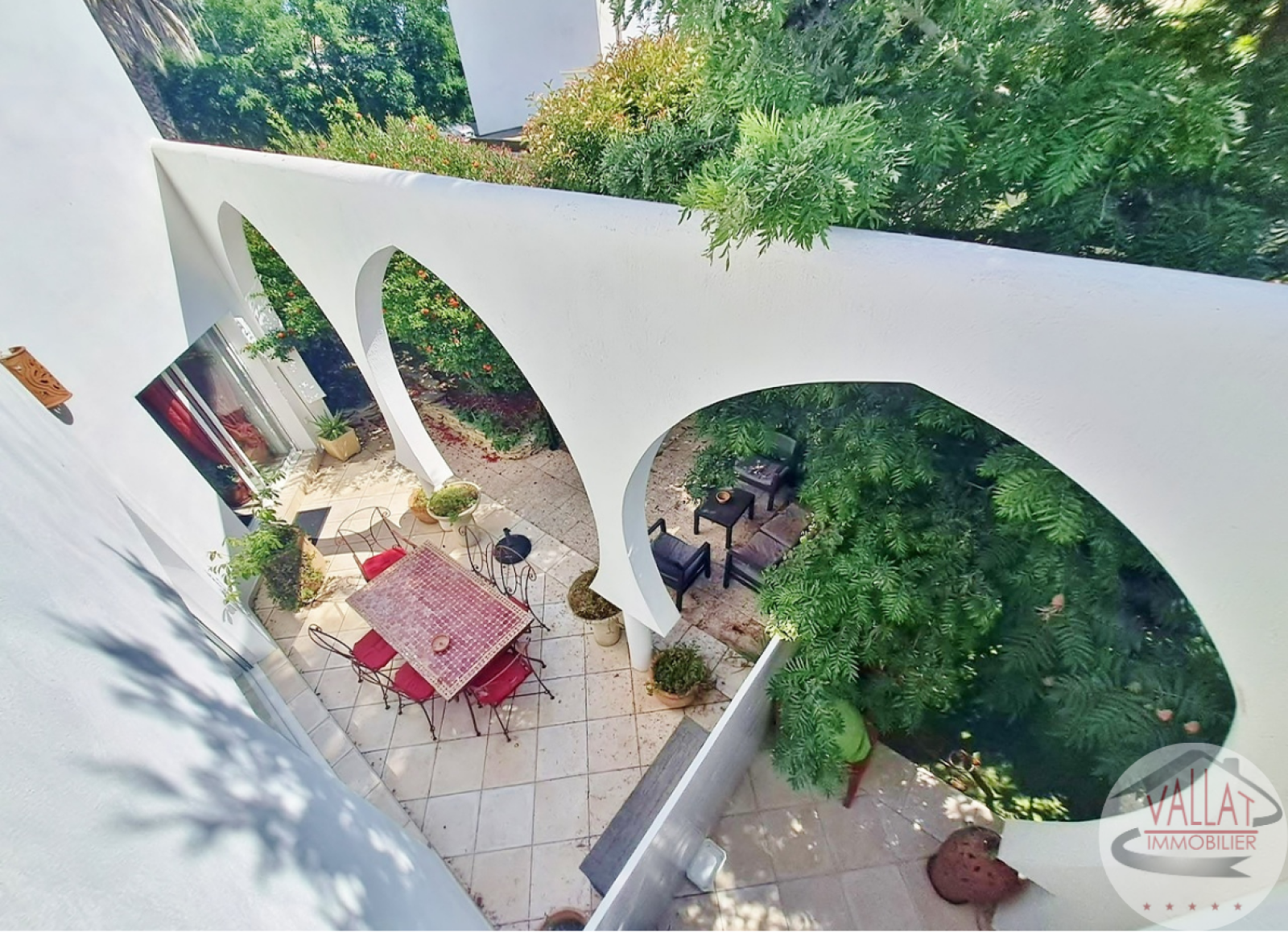 Édifiée sur une parcelle de terrain d’environ 485 m², cette villa d’environ 165 m² habitables offre un cadre de vie rare, entre confort moderne et douceur balnéaire.